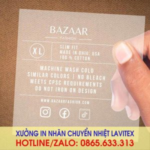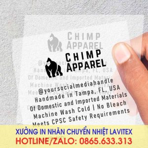 Công ty in Lavitex cung cấp các loại sản phẩm nhãn ép chuyển nhiệt, tem ép chuyển nhiệt, và nhãn ủi chuyển nhiệt với chất lượng tốt, đảm bảo không bị rạn nứt, biến màu, độ đàn hồi cao, và không bị bong tróc khi thấm nước hoặc ở nhiệt độ cao. Sản phẩm của công ty được sản xuất bằng công nghệ hàng đầu của Hàn Quốc và Đài Loan, mang lại hiệu quả đẹp và sắc nét.