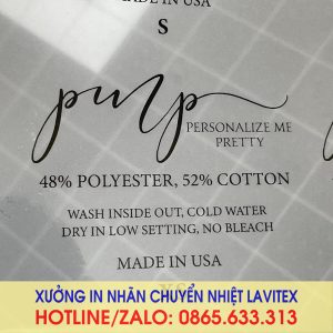 Công ty in Lavitex cung cấp các loại sản phẩm nhãn ép chuyển nhiệt, tem ép chuyển nhiệt, và nhãn ủi chuyển nhiệt với chất lượng tốt, đảm bảo không bị rạn nứt, biến màu, độ đàn hồi cao, và không bị bong tróc khi thấm nước hoặc ở nhiệt độ cao. Sản phẩm của công ty được sản xuất bằng công nghệ hàng đầu của Hàn Quốc và Đài Loan, mang lại hiệu quả đẹp và sắc nét.