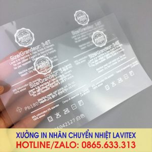 Công ty in Lavitex cung cấp các loại sản phẩm nhãn ép chuyển nhiệt, tem ép chuyển nhiệt, và nhãn ủi chuyển nhiệt với chất lượng tốt, đảm bảo không bị rạn nứt, biến màu, độ đàn hồi cao, và không bị bong tróc khi thấm nước hoặc ở nhiệt độ cao. Sản phẩm của công ty được sản xuất bằng công nghệ hàng đầu của Hàn Quốc và Đài Loan, mang lại hiệu quả đẹp và sắc nét.