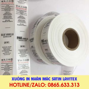 Công ty in Lavitex cung cấp các loại sản phẩm nhãn Nhãn In Satin IDST558 với chất lượng tốt, đảm bảo giữ màu trong quá trình giặt. Sản phẩm của công ty được sản xuất bằng công nghệ hàng đầu của Hàn Quốc và Đài Loan, mang lại hiệu quả đẹp và sắc nét.
